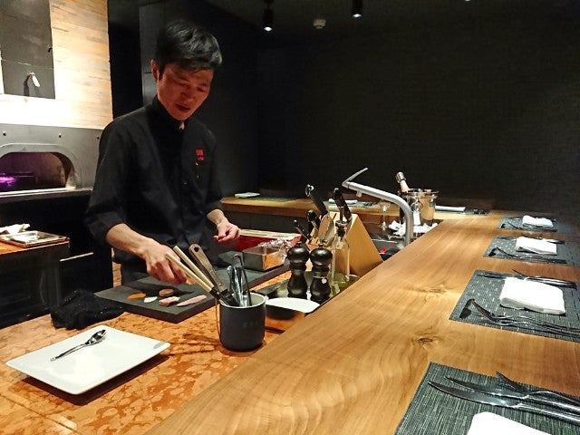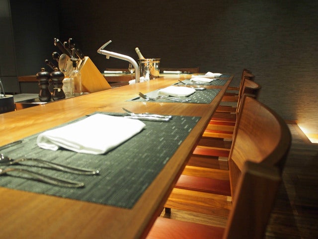 「3人寄れば……」。これはコミュニケーションの基本的な心理を突いていると思うのだが、2人での会話は手詰まりになることがあるが、そこに3人目の誰かがいることで円滑に進む。メニューで悩む、でもそこでシェフがいる。しかも2人は横並びで、ほどよい距離に3人目がいるという状況は、通常の相対するテーブル席にサービススタッフがいるという状況よりも、2人が心地よく同志である感が強まる。これは実際に試していただくと実感してもらえるだろう。