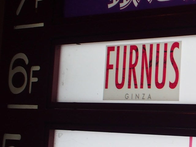 ちょうどよい店を見つけた。それがカウンターフレンチの店『FURNUS GINZA(フルヌス ギンザ)』。これらの要素がちゃんと満たされる店だ。場所は銀座6丁目。雑居ビルの6階。看板はかろうじてビルの1階の小さなステッカーのみ。知らなければ素通りしてしまう。銀座のなかにあって隠れ家の要素ありだ。小さなエレベーターを6階まであがる。すると世界は一変する。