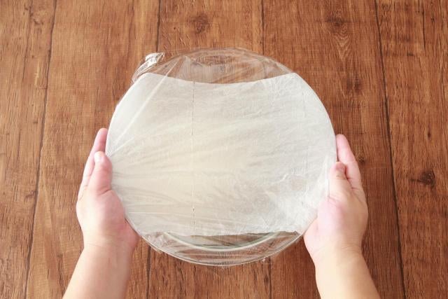 発酵中に生地が乾燥してしまうと、パサついて膨らみが悪くなる原因に。発酵している間は濡らして水気を絞った布巾、またはキッチンペーパーをかぶせ、上からラップをかけて生地が乾かないようにしよう。