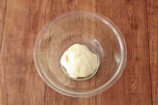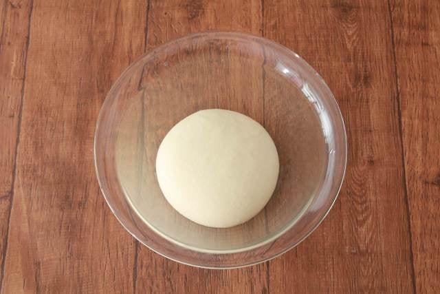 ③ 生地を丸め、とじ目を下にしてボウルに入れ、濡らして水気を絞ったクッキングペーパーをかぶせてラップをする。オーブンの発酵機能などを使い、30℃の温かい場所で生地が2倍に膨らむまで約60分発酵させる。(一次発酵)