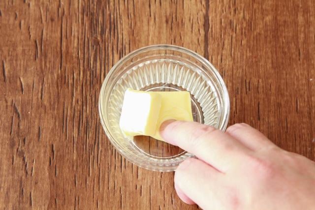バターの状態は、写真のように、指で押してへこむくらいになればOK。