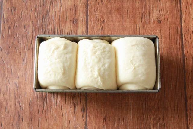 型に入れ、焼く前に生地を休ませる「二次発酵」では、生地が型の9割まで膨らんだら発酵完了のサイン。このタイミングでオーブンの予熱を始めよう。型いっぱいに膨らんでからオーブンの予熱を始めると、生地の発酵が進みすぎてしまい、焼き上がりの風味や膨らみが悪くなることがある。