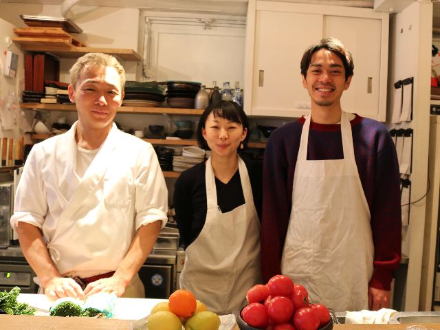 「珍しい銘柄のワインよりも、料理に合わせたものを」と大本さん。同じく望月さんも「まずは料理ありきでお酒を楽しんでほしい」と、息はピッタリだ。さらに内田さんの笑顔と気遣いあふれる丁寧な接客がプラスされ、おいしくて楽しい癒しの空間を創り出している。