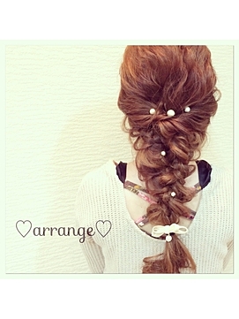 くるりんぱ、四つ編み、フィッシュボーンの境目にリボンを3つつけたり、