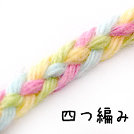 とっても簡単に四つ編みが作れることがわかりますよね。まずは紐を使って練習してみるのが◎