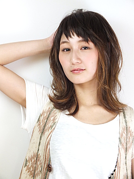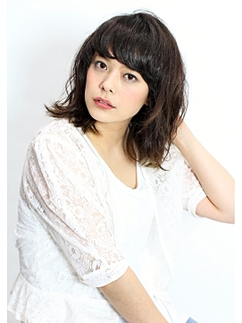 前髪重め×パーマで