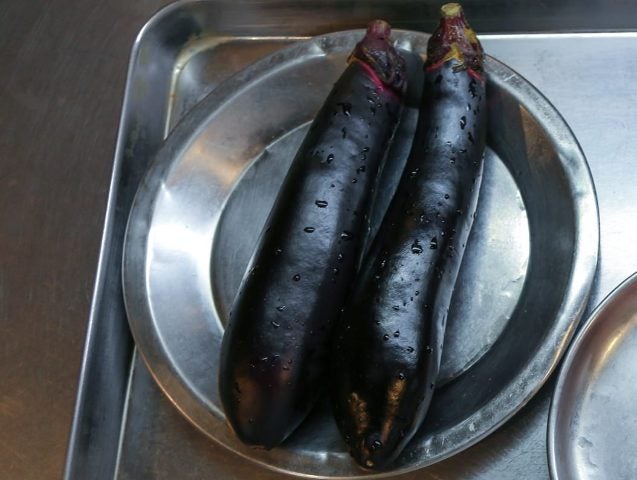 実がやわらかいのでトロッと仕上がります。千両ナスでもいいですが長ナスがベスト。米ナスなどかたいものはNGです。