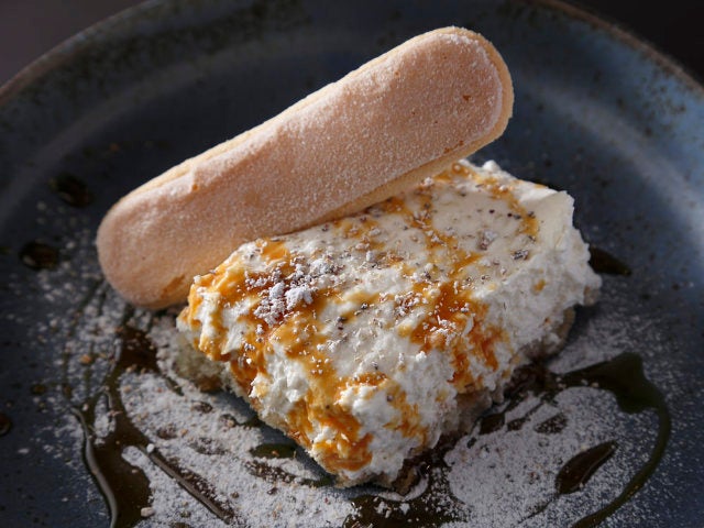 あっさりと仕上げるためにクリーム部分には卵を使わず、マスカルポーネにクリームチーズをブレンド。甘さ控えめながら、鼻腔をくすぐる紅茶の香りとしっかりスポンジに染みたラム酒により、優しいコクのある味わいが楽しいスイーツになっている。