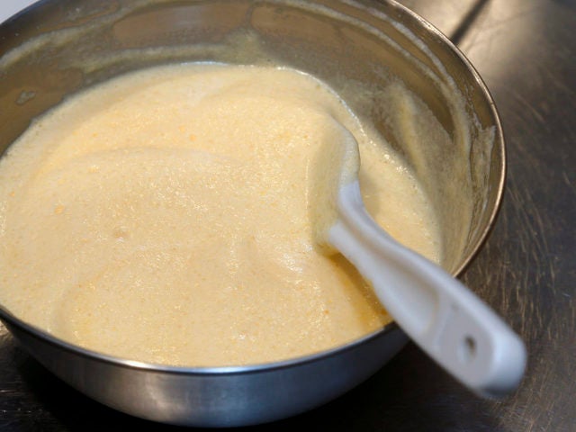 「メレンゲは固すぎるとフワフワとならず、柔らかすぎると流れてしまい、うまく形になりません。良い加減に仕上げるには少しコツがいりますね。」(亜厂シェフ)