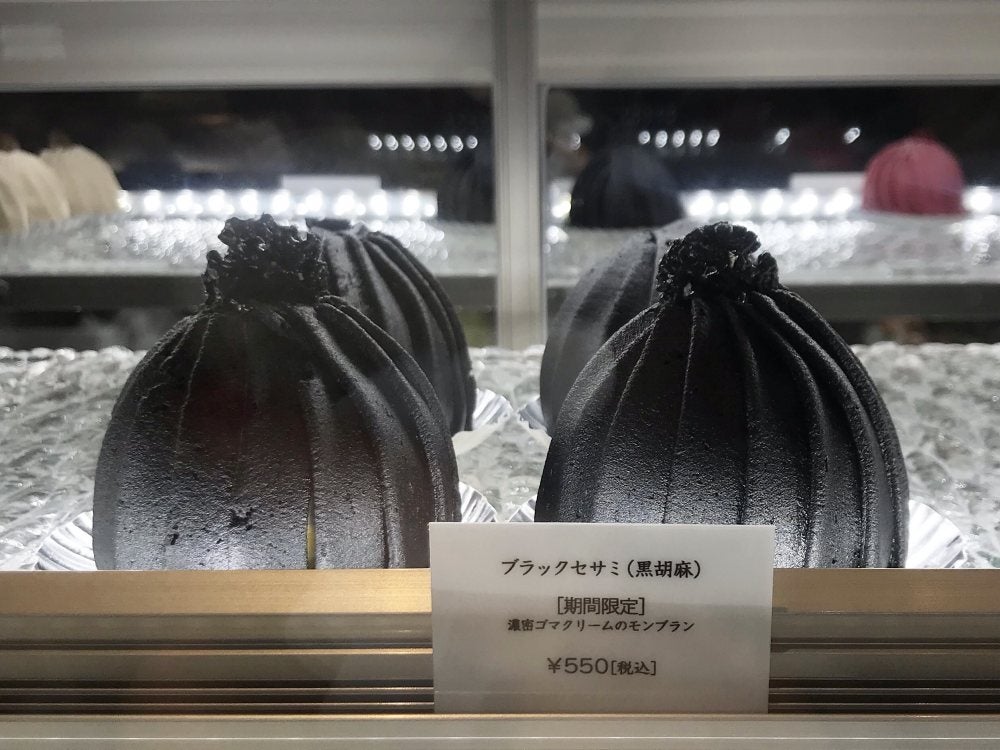 なんと真っ黒のケーキもありました!こちらは期間限定のブラックセサミのモンブラン。そもそもこのお店はモンブラン大好きな社長さんが始めたそうで、モンブランだけでも5種類ほどショーケースに並んでいます。