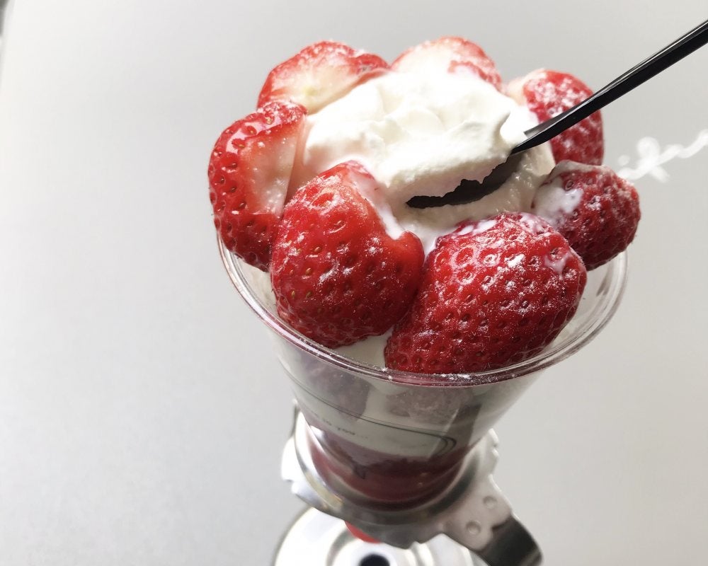 実はケーキ以外にも季節ごとの旬なフルーツを使用したパフェが、毎回話題になっているんです。こちらは撮影時、期間限定の「プレミアム苺パフェ」。