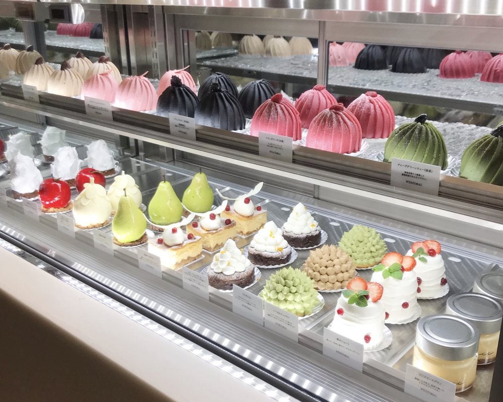 見てください、ショーケースにずらっと並んだ美しいケーキ♡色とりどりで、珍しい形をしたケーキがたくさんあるのが特徴的ですよね。