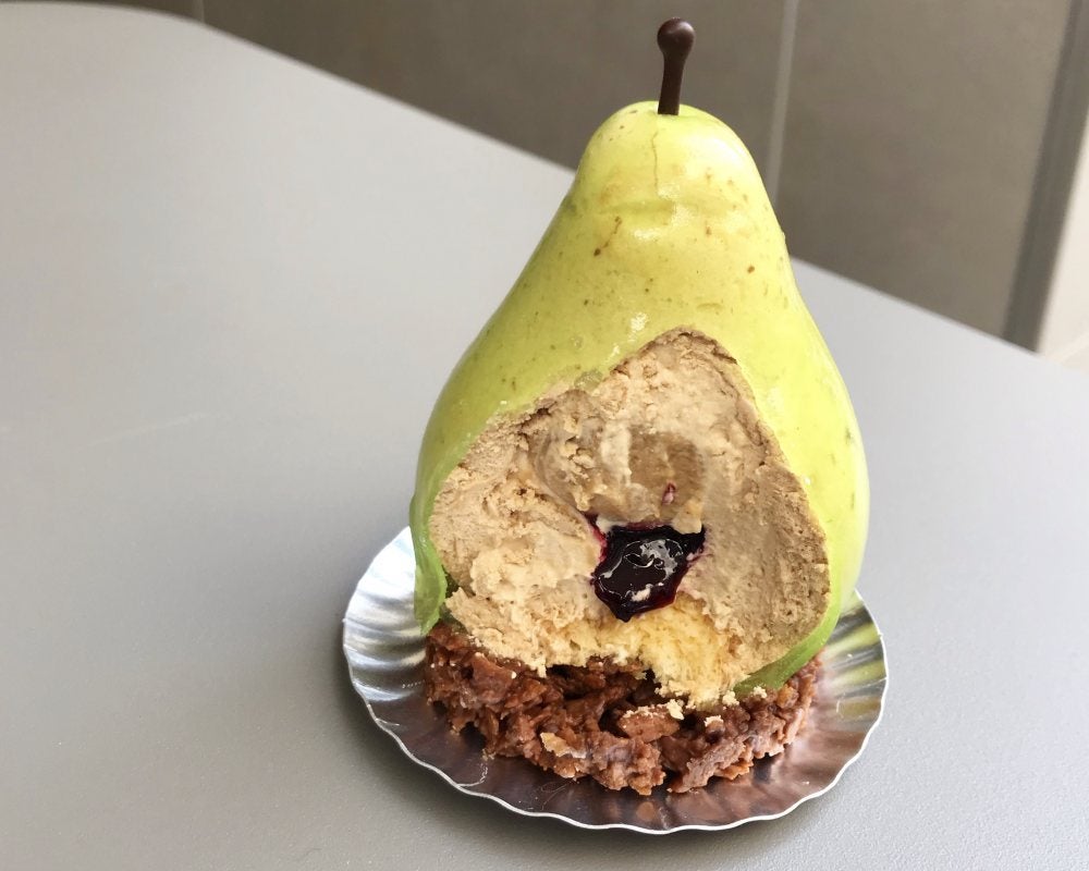 こちらは「真夜中の洋梨」。チョコレートでつけられた表面の点々がリアルで本物そっくり!こちらも謎めいた名前が素敵♡洋梨の中には何が入っているんでしょう…♪