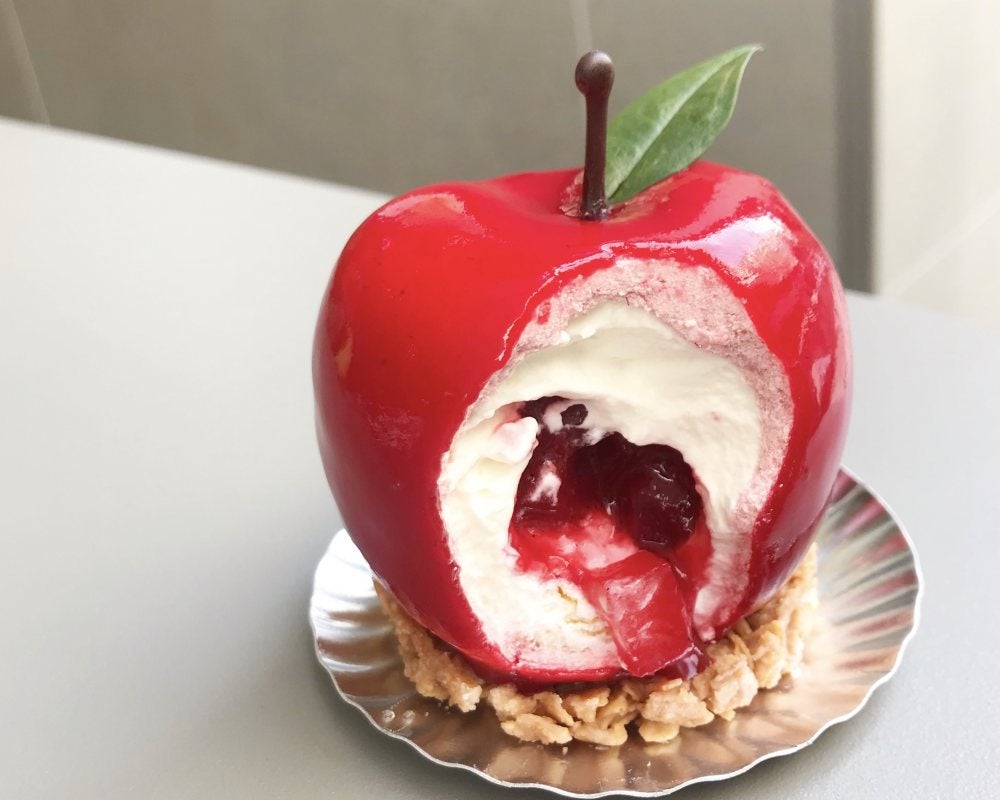 りんごのケーキはその名も「約束のりんご」。つるっとした表面がとっても美しく、名前まで素敵♡気になるりんごの中身は…