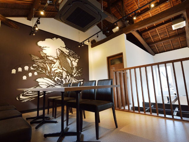 大きな梁や柱を一部そのまま残した内装には、木の温もりを感じるどこか懐かしい空気が漂っている。1階にはカウンター席が8席とテーブル3卓、2階にはテーブル1卓がある。