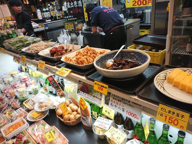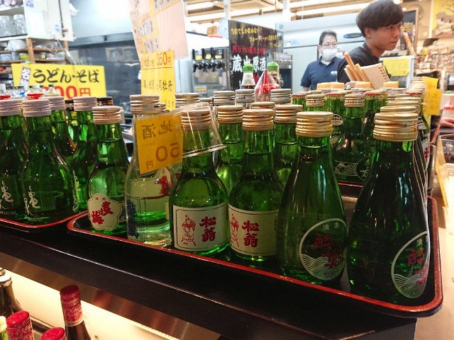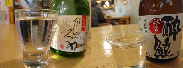 日本酒は300mlの飲みきりボトルが定番。オープンスペースならプラカップで気軽に、店専用の席であればグラスなどの酒器が用意されたりもする。高知が誇る酒蔵の様々な酒が飲み比べられる。「酔鯨」、「司牡丹」、「土佐鶴」などの大きな酒蔵から、「桂月」、「久礼」、「亀泉」など個性派も揃う。高知の酒のショーケースとしても楽しめるのだ。