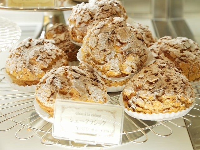 さらに、店の名を冠したスペシャリテ「シュークラシック」(写真上)にも自慢のカスタードクリームがたっぷり。小麦粉、脂肪分4.0%の濃厚牛乳を使い、小麦の風味を損なわず、コクがありながら驚くほどなめらかな舌触りを実現している。生地にはあられ糖をまぶしてあり、サクサクとした食感と香ばしさが特徴だ。