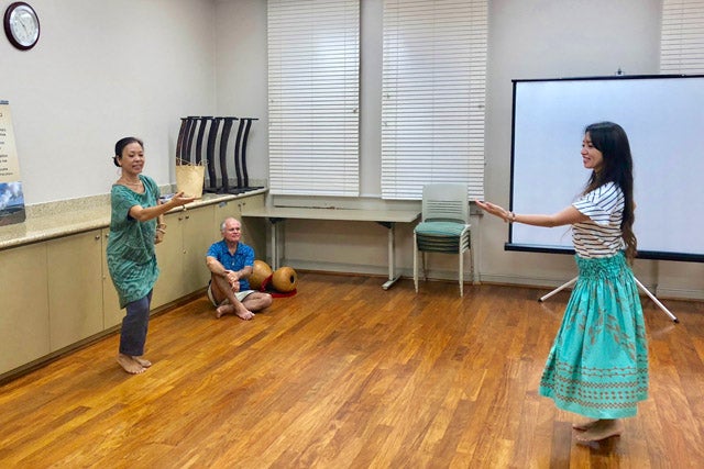 約1時間のフラレッスンですが、初めての方でも1曲踊れるようになりますし、経験者にはより細かい指導を加えるなど、参加者によってレベルを調整してくれるのも嬉しいところ。フラ経験のないご家族やお友達とも一緒に楽しめると思います。