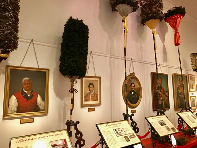 その後は博物館内へ。ビショップ博物館とは何かを説明して頂いた後に、まずは「カヒリルーム」へ向かいます。フラを学ぶ上で非常に大切なハワイ王室の歴史などについて簡単に教えて頂きます。