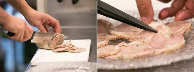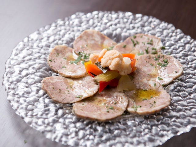 「イタリアでは、豚は捨てるところがないと言われていて、ハムなどには使われない部位も大切に使います。うちのソップレッサータは少しだけ豚足も入れているので、ゼラチン質をしっかり感じていただけますよ」(河合さん)