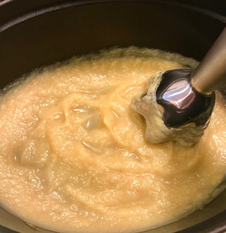 4.野菜が柔らかくなったら、ブレンダーもしくはミキサーで撹拌する