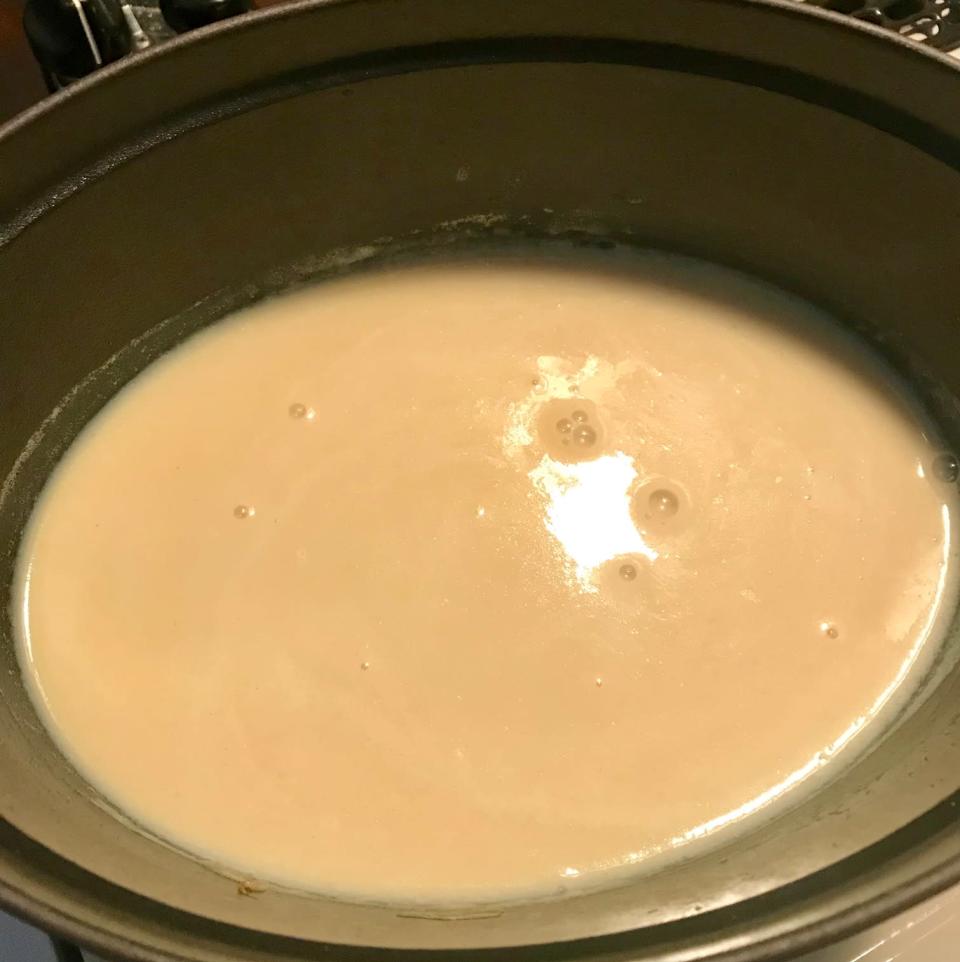 5.再度鍋に戻し、豆乳を入れて温めながら混ぜる