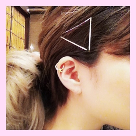 コンサバなヘアアレンジに三角ゴールドピンを足してあげれば、あっという間に今風に。