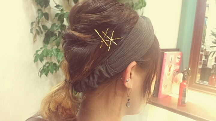 明るい髪色だと、あまり目立たないゴールドピン、、、。