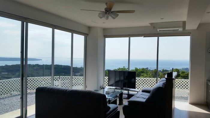 沖縄西海岸の高台という立地上、東シナ海と島々を見渡せる抜群の立地。海に面したリビングの大きな窓からオーシャンビューの最高の景色を見渡せて開放感たっぷり、夕暮れが迫るごとに刻々と色を変える空と海の表情の変化も楽しめます。
