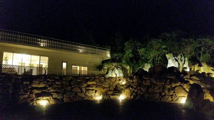 キッチンがあるので地元のスーパーや市場などで自ら調理をできるのも魅力。バスルームは大きな岩風呂を備えた贅沢な造り。夜は幻想的なライトアップが灯り、静寂に包まれた星空の下、大型ホテルとはまた違った貸切ならではのプライベートな時間を約束してくれます。