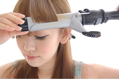 おでこが狭い人は眉下ギリギリでも浮いてしまう可能性があるので、目と眉の間で切って、思いっきり巻くのがGOOD