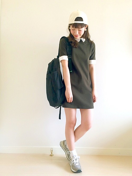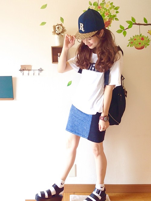 甘すぎる髪型をキャップがうまく引き算してくれます◎