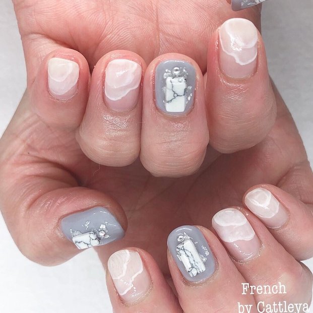 ホワイトカラーの波ネイルなら、さりげなく楽しむことができます。グレーカラーのネイルをかけ合わせれば、スタイリッシュなデザインにまとまるのでおすすめです。