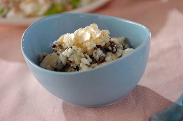レーズンとシナモン、はちみつを混ぜたフローズンヨーグルトは、甘さ控えめでさっぱりした味わいです。一気に冷やすと固くなり過ぎてしまうので、時々冷凍庫から取り出してかき混ぜてくださいね。
