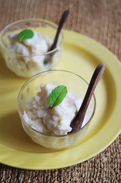 濃厚過ぎず自然な甘さのフローズンヨーグルトにしたいときは、バナナとはちみつを加えてみましょう。仕上げにラム酒を少しかければ、リッチな香りの大人向きデザートになります。
