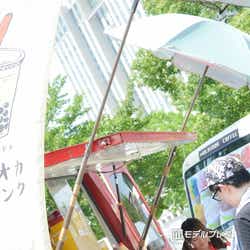 日本の夏の風物詩となっている同イベントでは「GARDEN MARKET」エリアに、観客の癒やすフード・ドリンクを提供する店舗を設置。エリア入り口を入ってすぐ目に入る赤いワゴンが「amitapi」だ。もともと、「amitapi」は、今年の1月29日に沖縄・国際通りの真ん中にあるテンブス館1Fにオープンした最新タピオカカフェ。定番のタピオカミルクティはもちろん、沖縄ならではの紅芋タルトドリンクや本物の果実をまるごと使ったパインジュースもあり、壁色も沖縄の青空のようなスカイブルーでSNS映えをとことん意識したカフェとして人気。