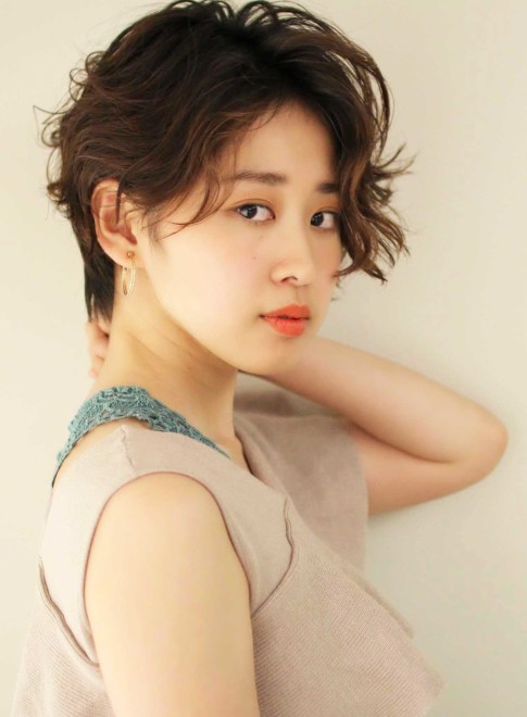 無造作に動く毛束が印象的なMIX巻きです。幼く見えがちなショートヘアも、このアレンジにすればグッと大人っぽい印象に。コテは32mmを使用しています。