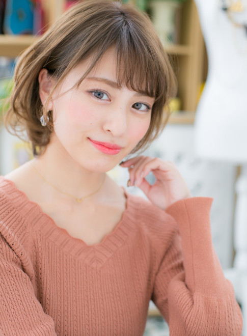 輪郭に沿った前下がりスタイル。ふわっと内巻きで、さりげなく輪郭をカバーしています。耳かけスタイルならスッキリして見えて、美人度アップ。かわいいだけではなくきれいめな魅力があるので、大人女子によく似合います。