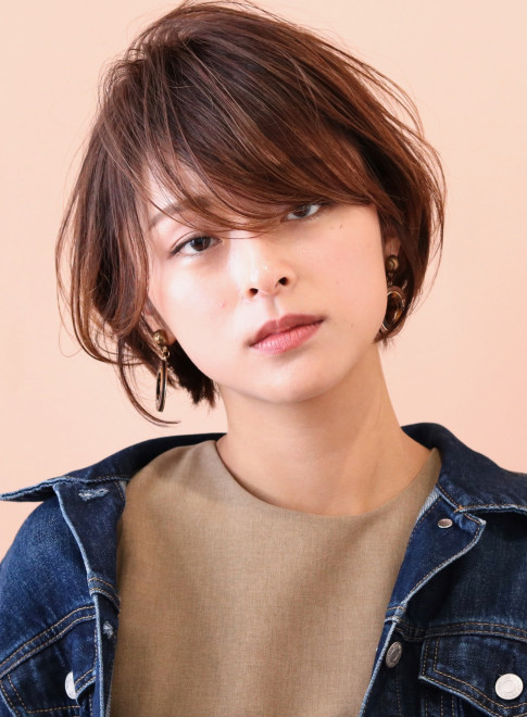 ひし形シルエットのナチュラルなショートボブ。小顔に見える美シルエットで、美人度アップ。ツヤ感を意識したカラーやスタイリングを意識することで、ナチュラルでもきれいめな印象に仕上がります。