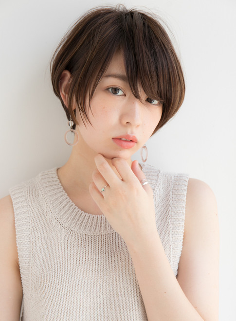 ナチュラルに仕上げた小顔ショートです。ハンサムだけどフェミニン、相反する要素を兼ね備えた欲張りスタイル。サイドは丸みを作って小顔に見えるようにカットしています。