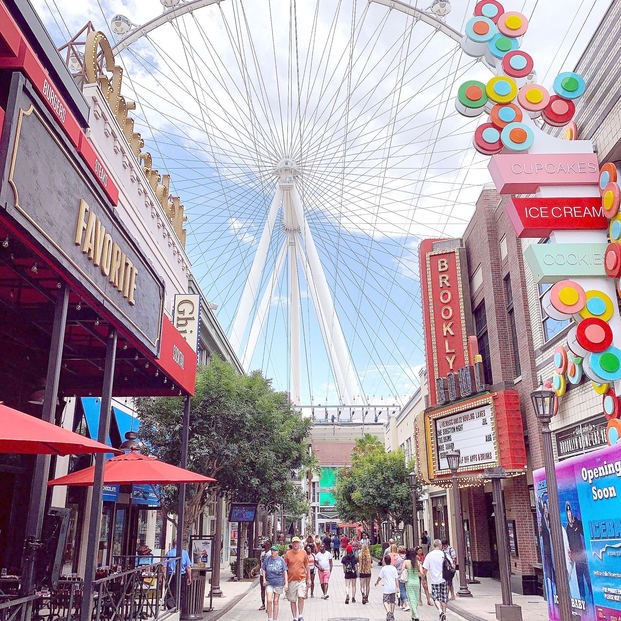 世界最大の観覧車・ハイローラーが目の前に見えるストリートのリンクプロムナードには、フォトジェニックなサインやお店がたくさん!どこで撮影してもベガスな気分を高めてくれますよ。