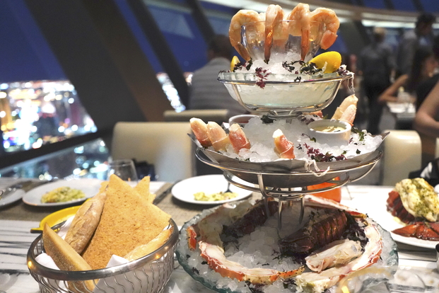 夕陽から夜のネオンに染まる景色を見ながら食べられるアメリカンディナーは格別!ストリップストリートからダウンタウンまで360度見渡せますよ。ステーキやシーフードが中心ですが、おすすめのロブスターはぜひ注文を♡