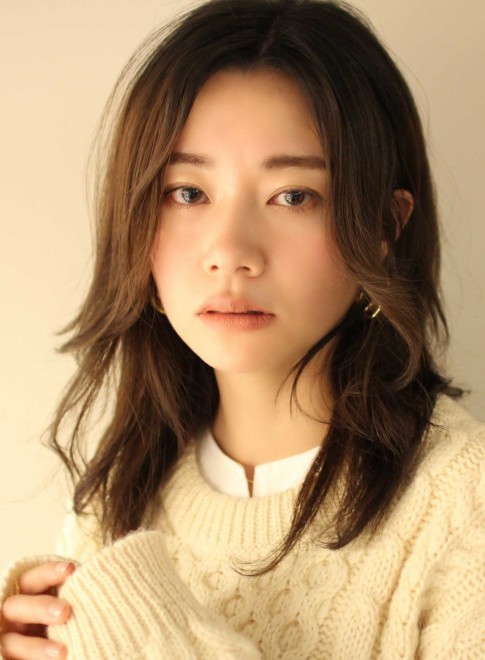 ダークトーンでも抜け感があって、重たく見えないのがカーキアッシュの魅力。ふんわりとボリュームのあるミディアムヘアも、カーキアッシュなら透明感アップ。ナチュラルに下ろしたヘアでもおしゃれ顔に見えます。