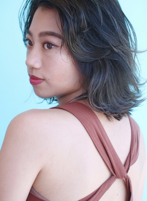 ゆるふわなセンターパートのボブは、大人の魅力満載のヘアスタイル。ハイライトありのカーキアッシュで、ヴィンテージライクに。かわいいイメージのボブが、こんなにもクールに決まります。