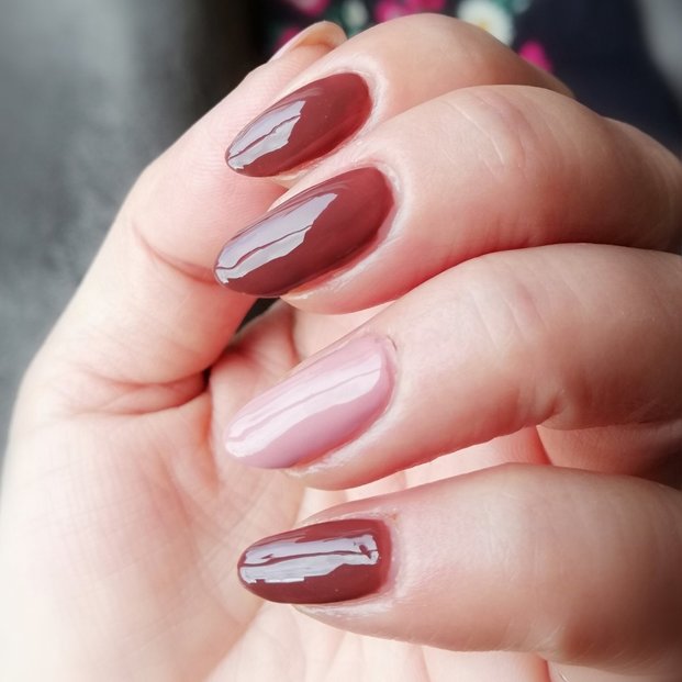 ベージュBE863とブラウンBR363は、どちらも少し赤みがかった色合いです。2つを組み合わせると、塗るだけでも統一感があってお洒落なネイルができあがります。
