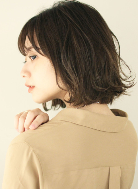 前上がりシルエットでより顔周りに遊びを効かせ、ふんわりを楽しめるのがこちらのスタイル。濡れた髪にスタイリング剤をつけるだけと、簡単にスタイリングできるのも嬉しいですね。