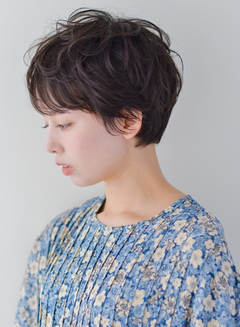 こちらは毛先のワンカールが可愛い、大人ラフショート。短い方がふんわりシルエットを表現しやすいので、ぺたんこが気になる方は思い切ってショートにしてみるのはいかがですか♡