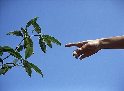手を葉っぱの中に入れると閉じるのが