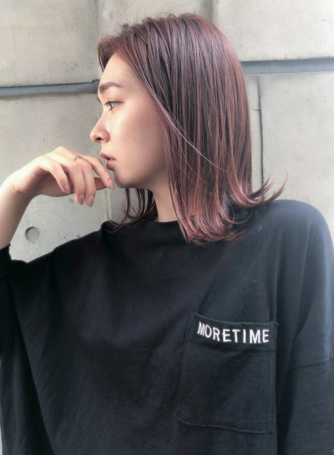 透明感とツヤが手に入るピンク系カラー。ダークトーンの服とのコントラストが、おしゃれ度を格上げしてくれます。
