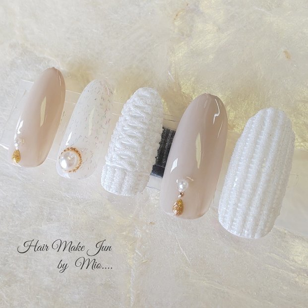 今年人気を集めている、ニットデザインのネイルです。ホワイトカラーのニットネイルは、上品なカラーで冬のオフィスネイルとしてもおすすめですよ。